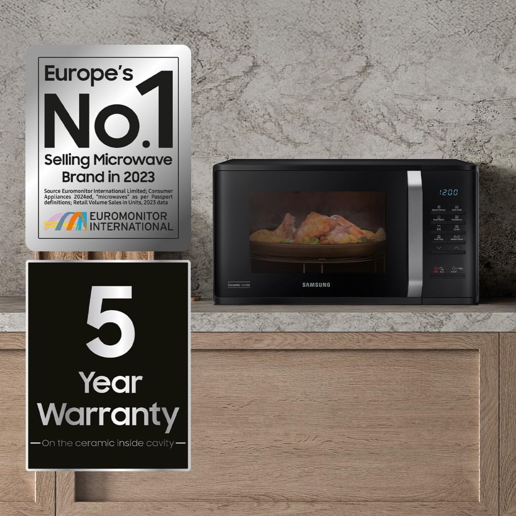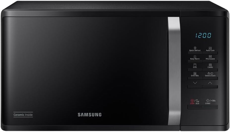 Contenuto: 1x Samsung Forno a Microonde Grill Cottura Croccante MG23K3523CKE1, Piatto Doratore, Capacità: 23L, Colore: Nero, LxAxP: 48,9 x 27,5 x 39,2 cm
