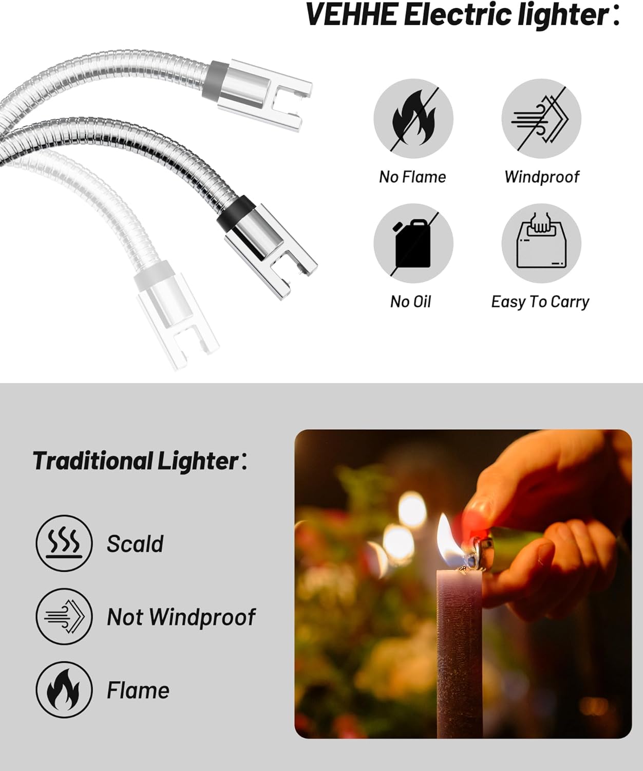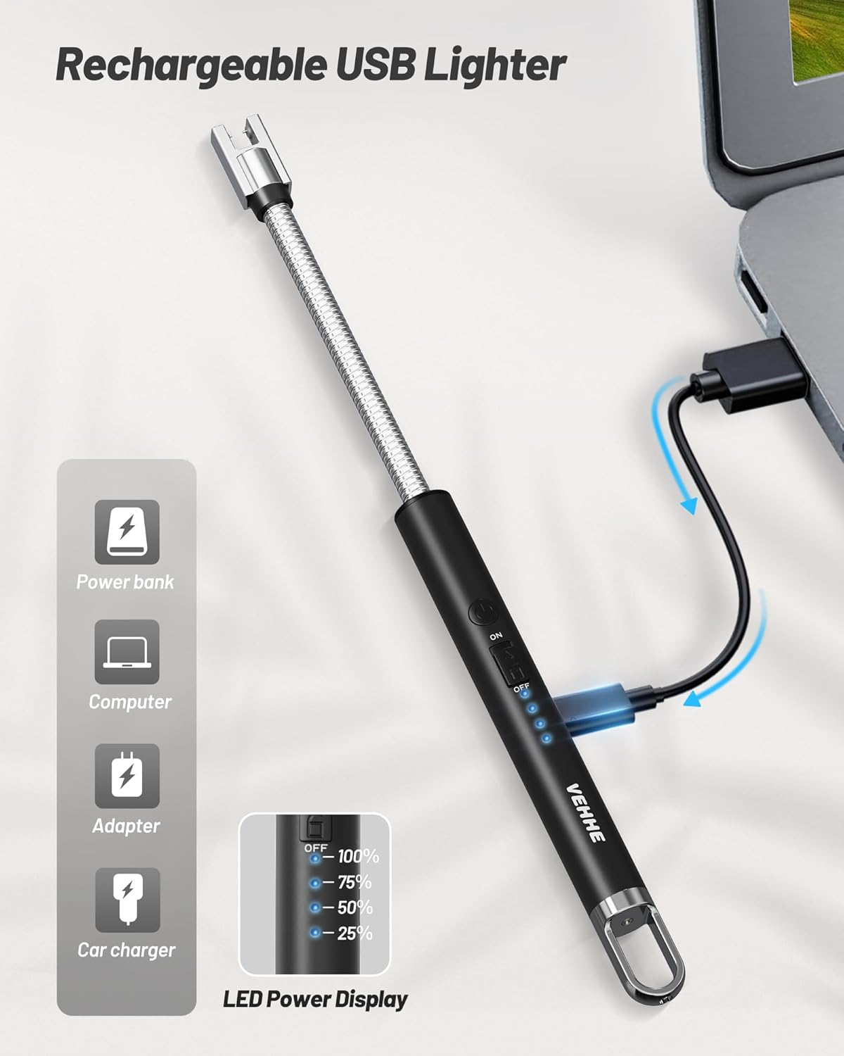 Accendino Elettrico VEHHE Ricaricabile USB: Accendino Lungo per Candele, Fornelli a Gas, Campeggio e Barbecue con Neck Rotante a 360°