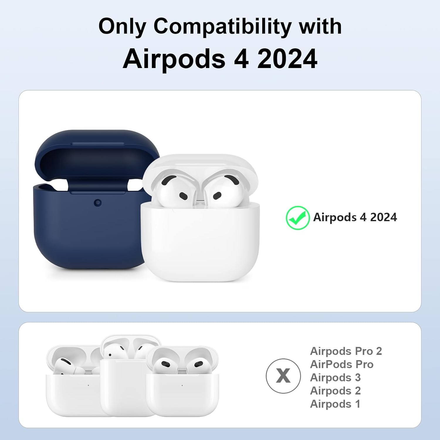 This durable silicone case is specially made for AirPods 4 (2024). Not compatible with AirPods Pro 2 (2023/2022/2019), AirPods 3 (2021) and AirPods 2&1 (2019/2016).