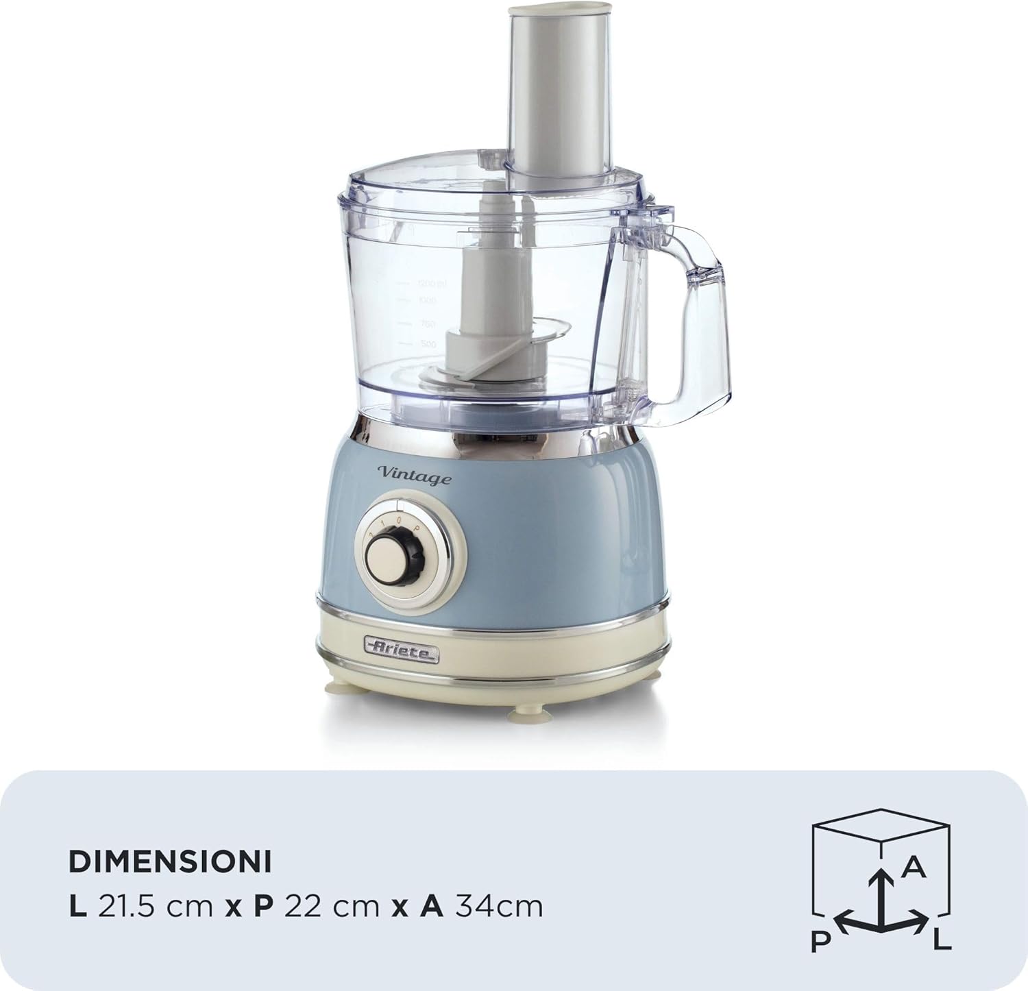 Ariete 1781 Vintage Food Processor, 1000W, 2.1L Capacity, For Dough Making, Light Blue