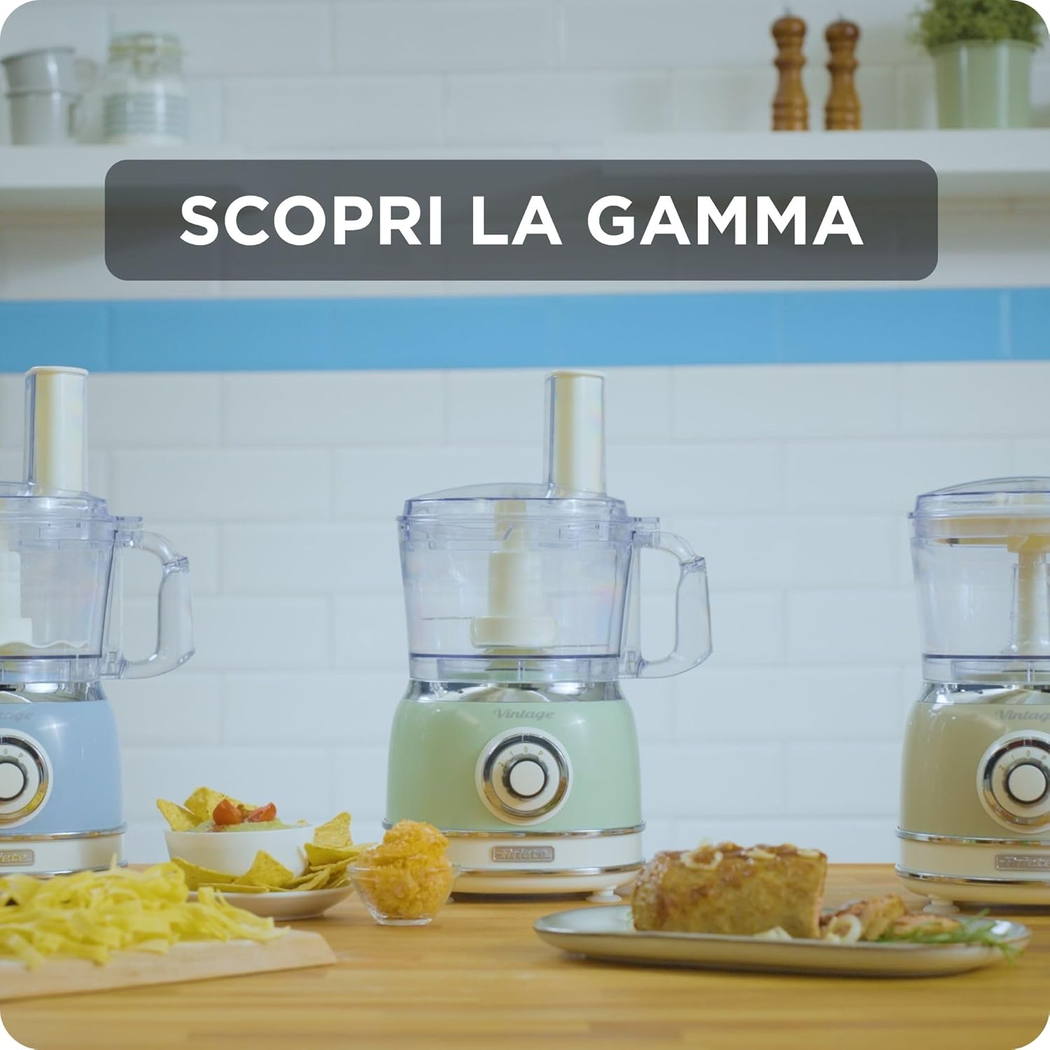 Ariete 1781 Vintage Food Processor, 1000W, 2.1L Capacity, For Dough Making, Light Blue