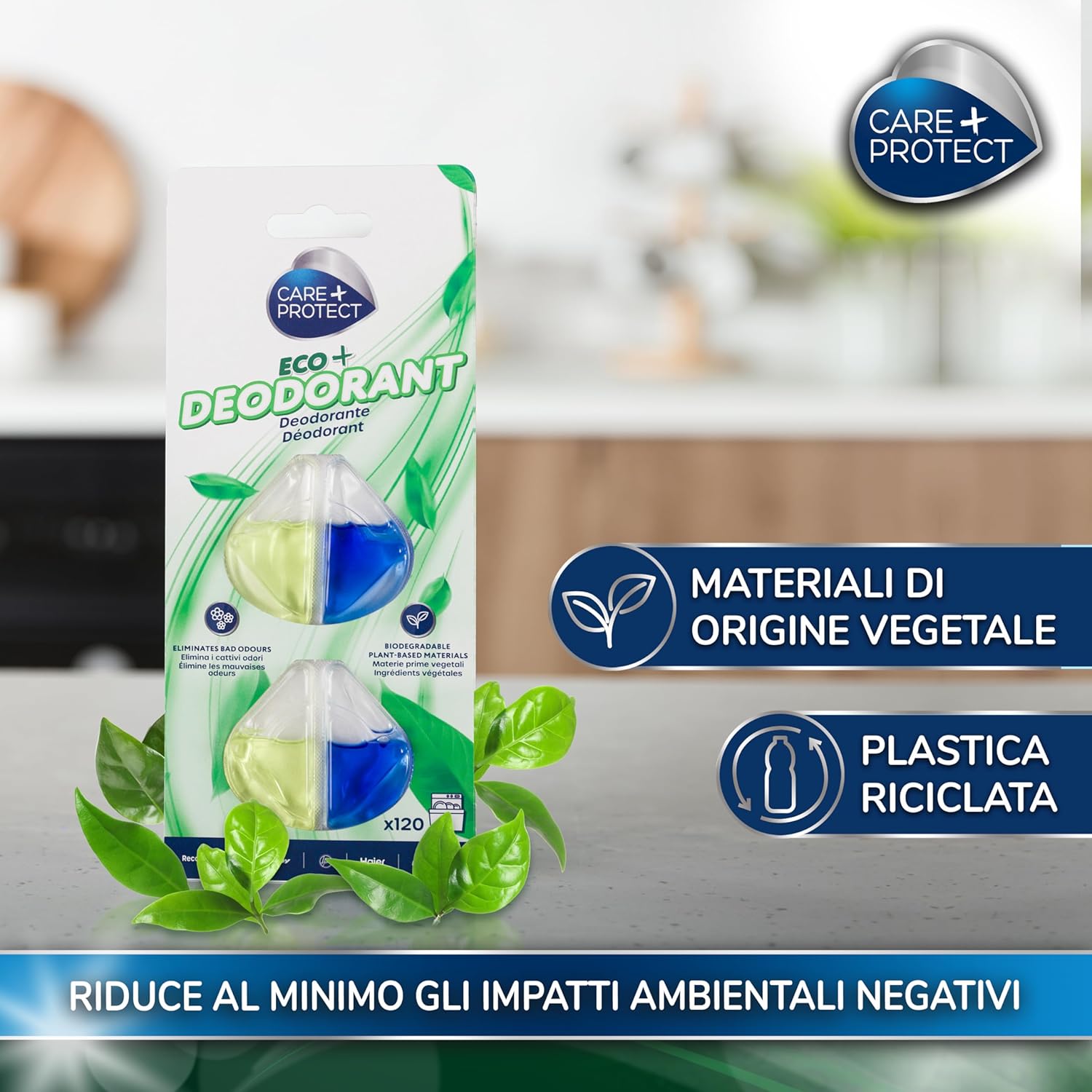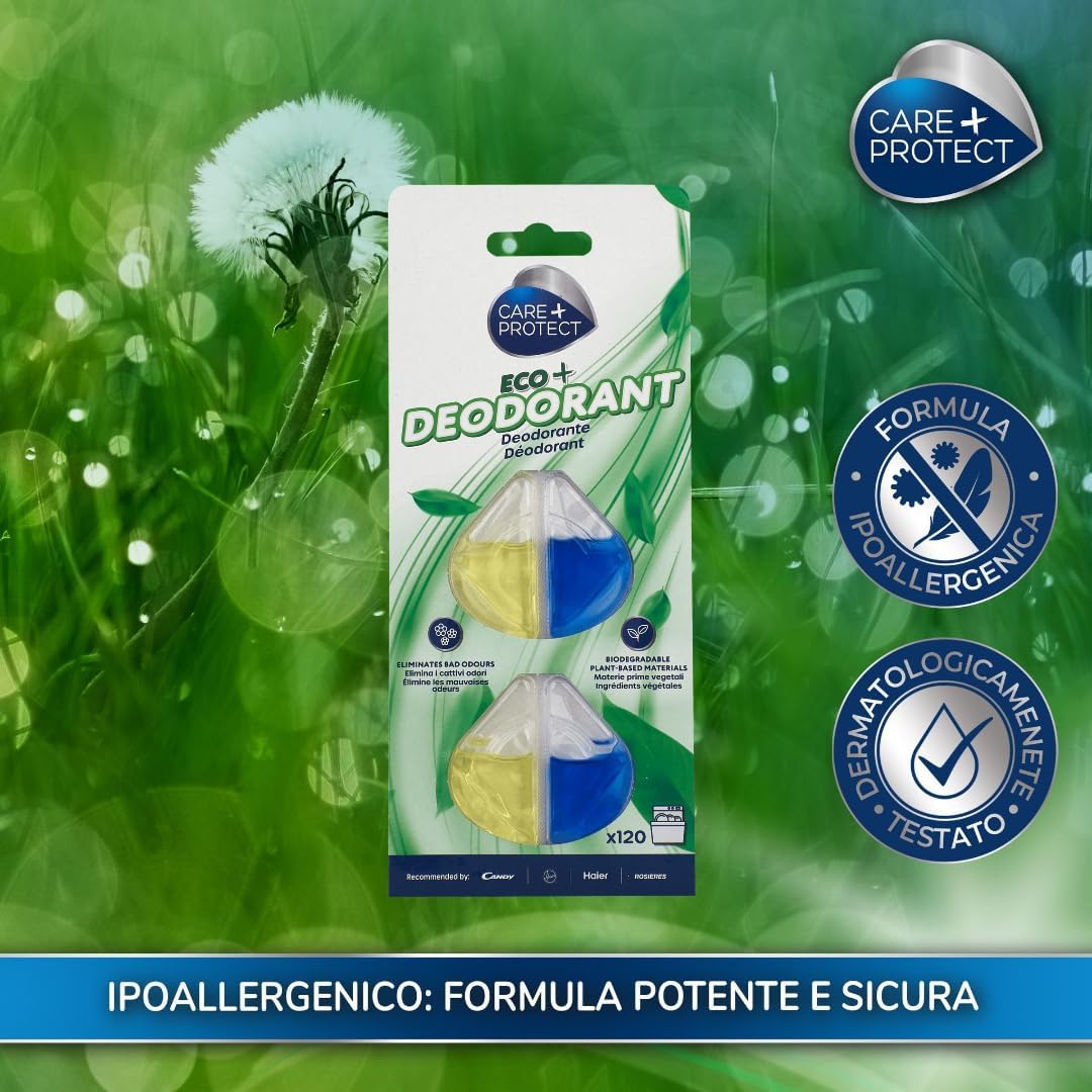 ECO-FRIENDLY: ECO+ dishwasher deodorant is formulated with biodegradable materials of plant origin. Use the recommended dose to minimize environmental impact.