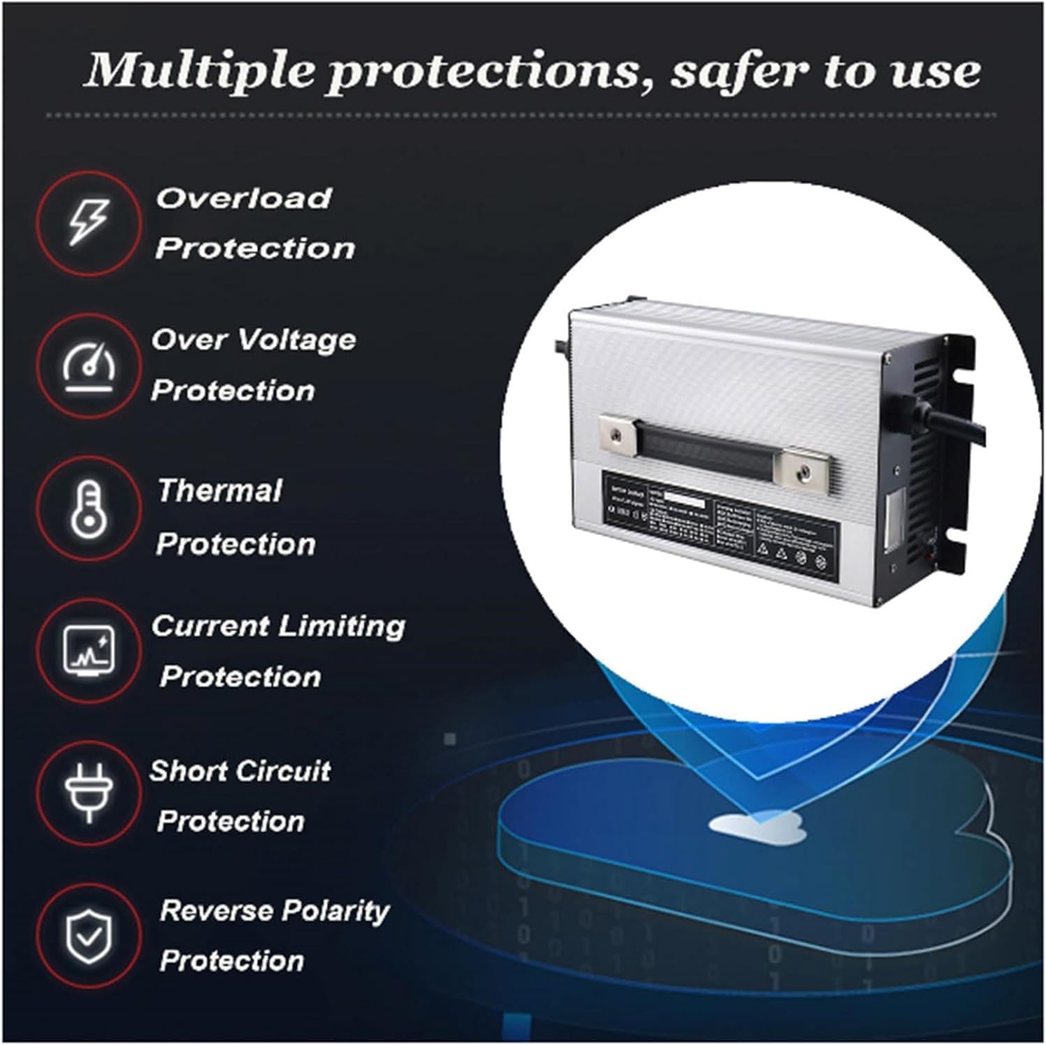 Efficienza di carica eccezionale: con una potente uscita da 1500 W e una tensione di 36 V, questo caricabatterie per batterie al piombo-acido fornisce una corrente costante di 30 A e un limite di tensione di 44,1 V, assicurando che i tuoi dispositivi elettrici vengano caricati in modo rapido ed efficiente. Che si tratti di un carrello elevatore elettrico o di un’auto di pattuglia, la tua attrezzatura sarà sempre pronta.