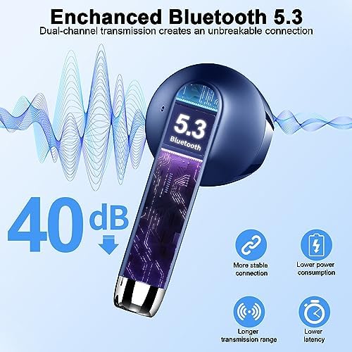 Cuffie Bluetooth, Auricolari Bluetooth 5.3 Cuffie Wireless in-ear con 4 ENC Mic, Cuffie Senza Fili Cancellazione Rumore, Mini Cuffiette Bluetooth IP7 Impermeabile HiFi Stereo LED Display USB-C Blu