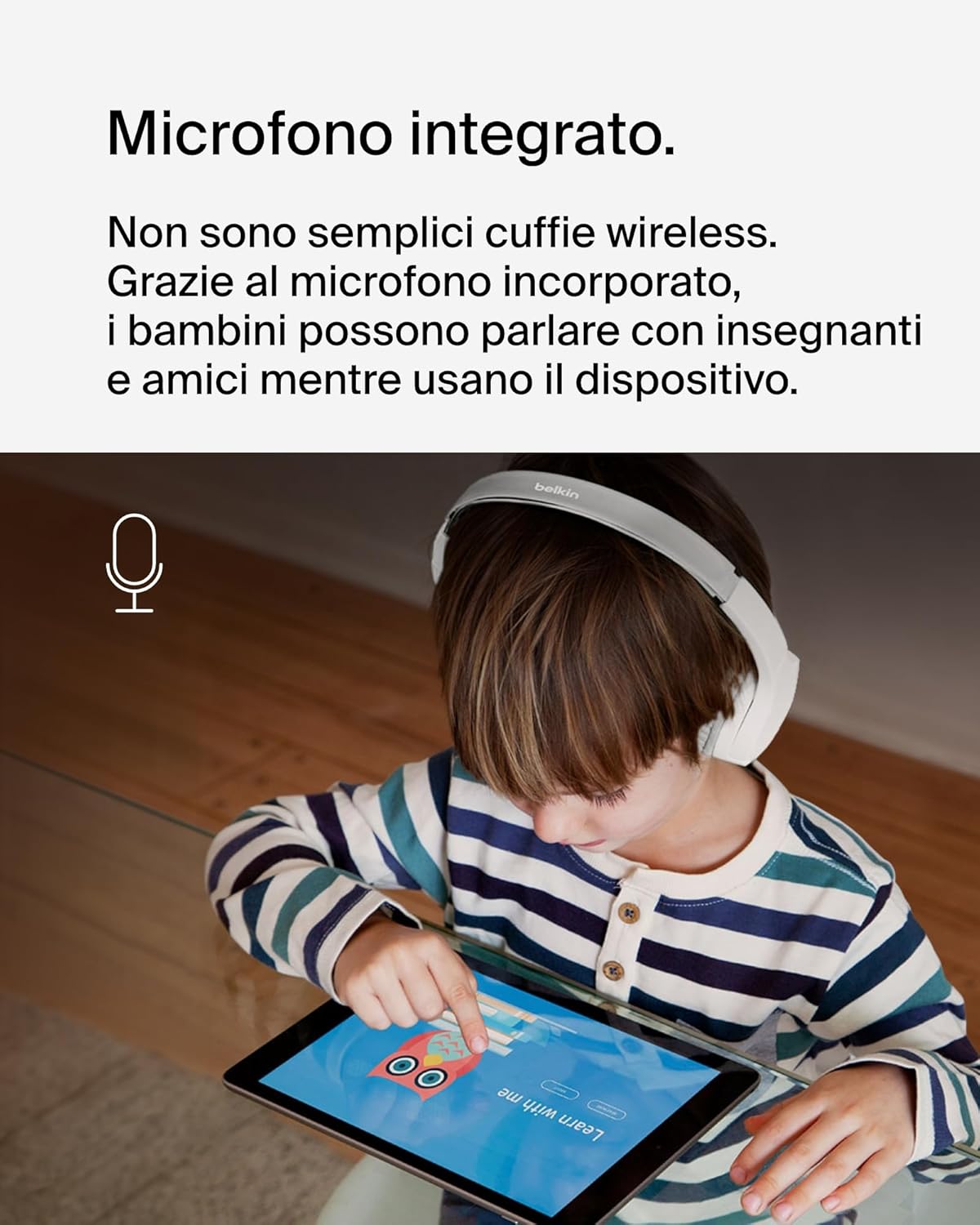 Microphone & Safety: Use the built-in microphone for video and audio calls, with belkin’s signature sound, which is tuned to children’s levels, the headphones have a high volume of 85db to protect ears