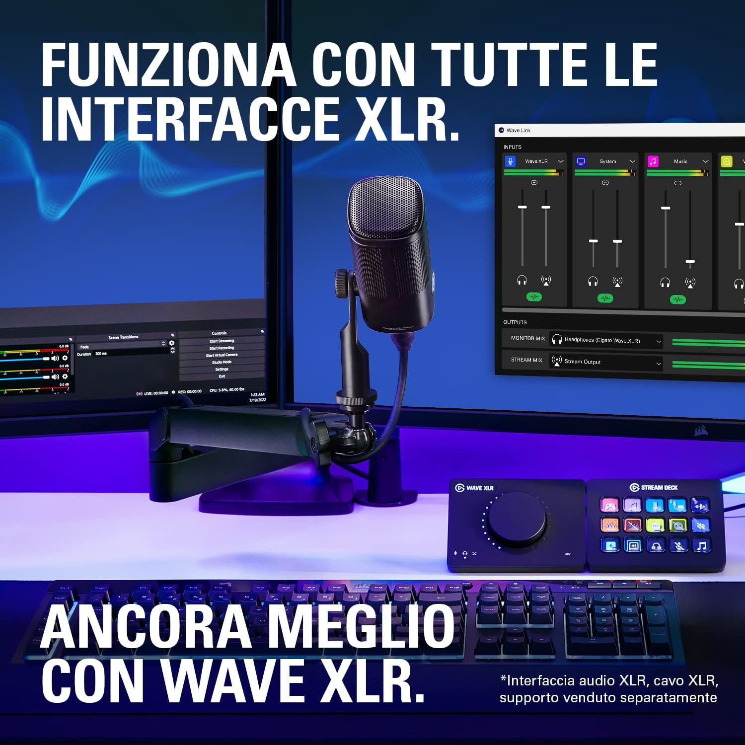 Elgato Wave DX: Microfono Dinamico XLR Cardioide Ottimizzato per Podcast e Streaming Riduzione del Rumore e Compatibilità Universale per Mac e PC