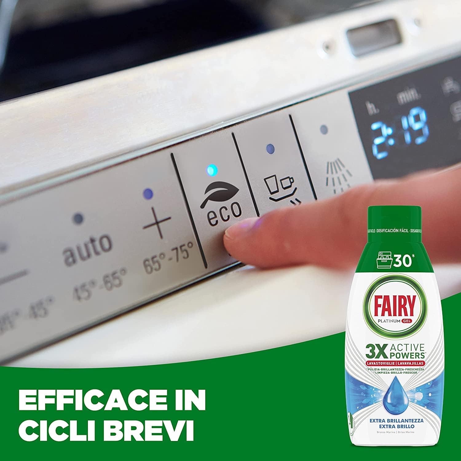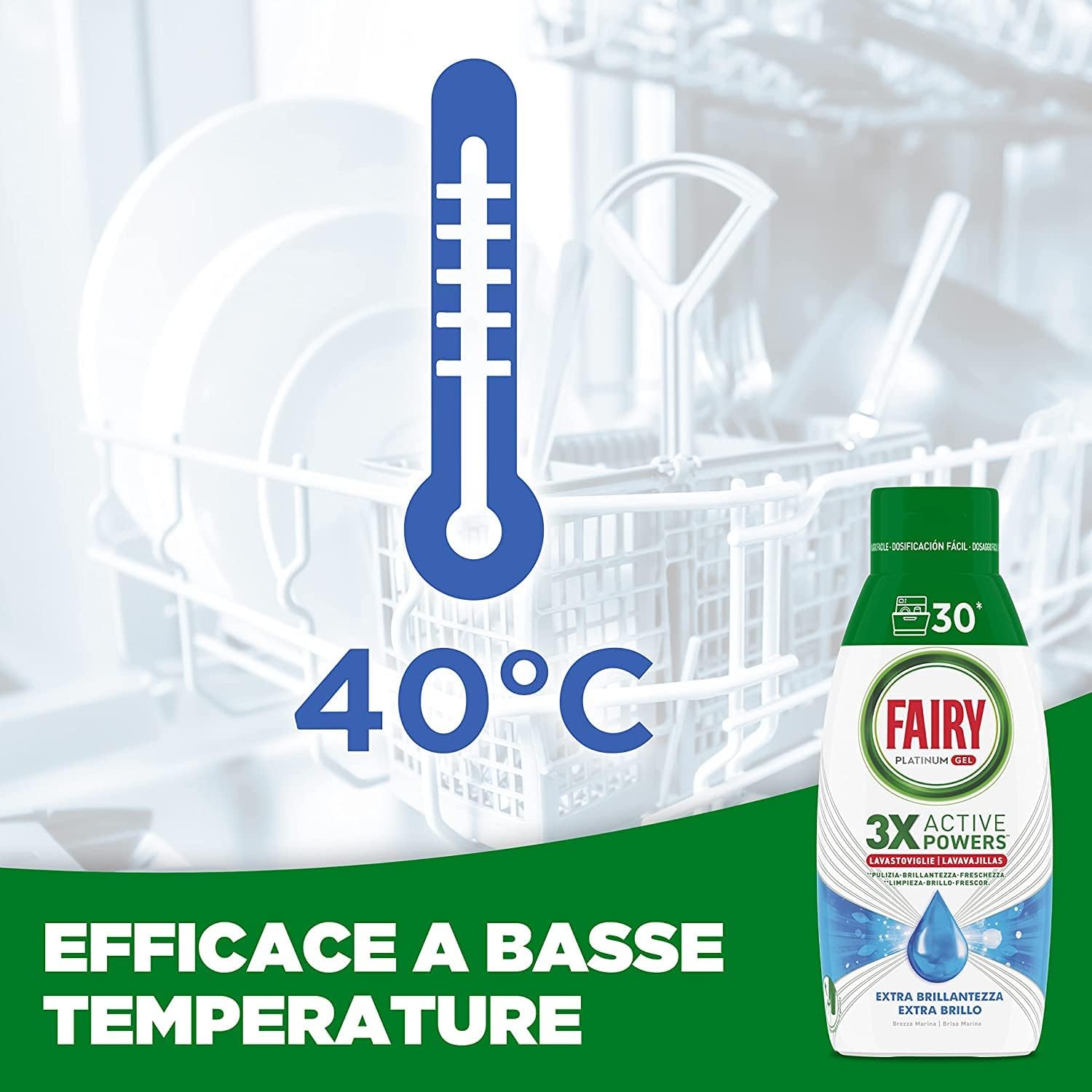 Per avere piatti puliti, prova Fairy Platinum Gel detersivo liquido per lavastoviglie. Il gel per lavastoviglie Fairy Platinum con i suoi 3 poteri attivi combina pulizia, brillantezza e freschezza. Si dissolve rapidamente anche a basse temperature e può essere utilizzato nei cicli brevi.