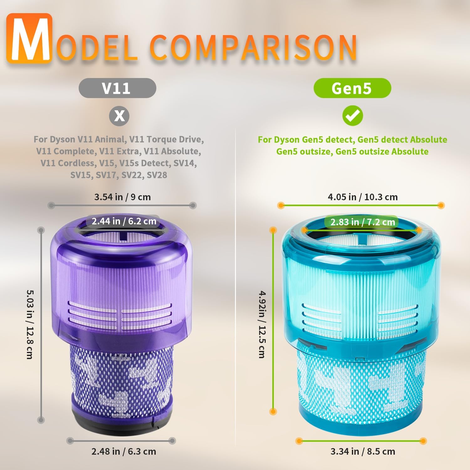 iVanzoll The replacement G5 filter is perfectly compatible with Dyson Gen5detect, Gen5detect Absolute, Gen5outsize Absolute vacuum cleaner, replace them on part 972352-01. Please check your vacuum cleaner model before placing an order to avoid mistakes when buying. (Not compatible with Dyson V15)
