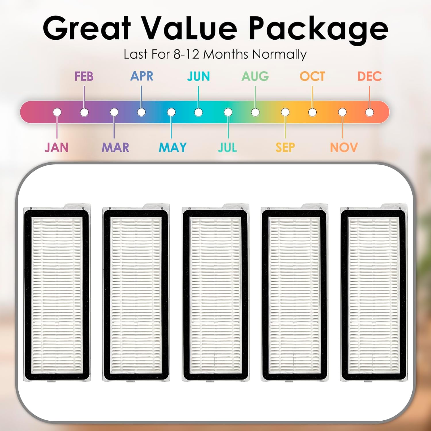 【Great Value Package】This package will come with 5 high quality HEPA filters. It is a convenient choice to integrate replacement HEPA filters for your robot vacuum cleaner.