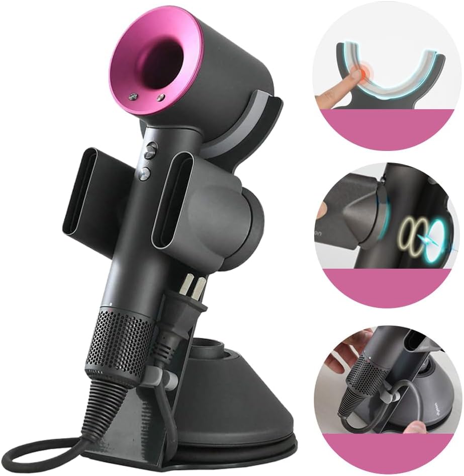 【Muta stabile antiscivolo】L’anello di contatto tra la staffa e l’uscita dell’aria dell’asciugacapelli supersonic prende il design magnetico. Aggiunto un design in plastica morbida, impedisce all’asciugacapelli di entrare in contatto con il rack per rendere suono e usura.