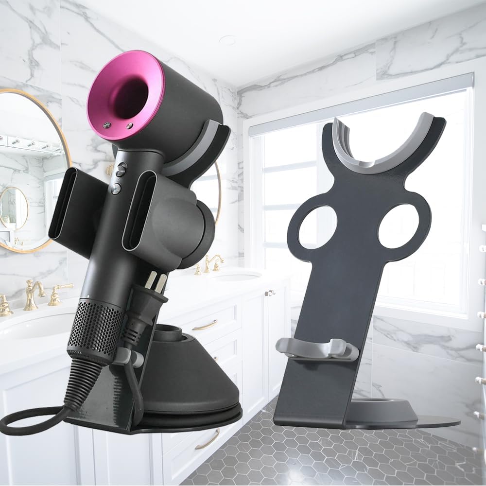 Design di alta qualità: realizzato in lega di alluminio di alta qualità con lucidatura raffinata e rivestimento oleofobico, la copertura per la testa in ABS antigraffio protegge la testa dell’asciugacapelli Dyson da graffi e cadute, prestazioni perfette. La docking station in lega di alluminio di alta qualità viene fornita con un coperchio per asciugacapelli in ABS e due fori magnetici per diffusore e ugelli, ideale per camera da letto, bagno, soggiorno.
