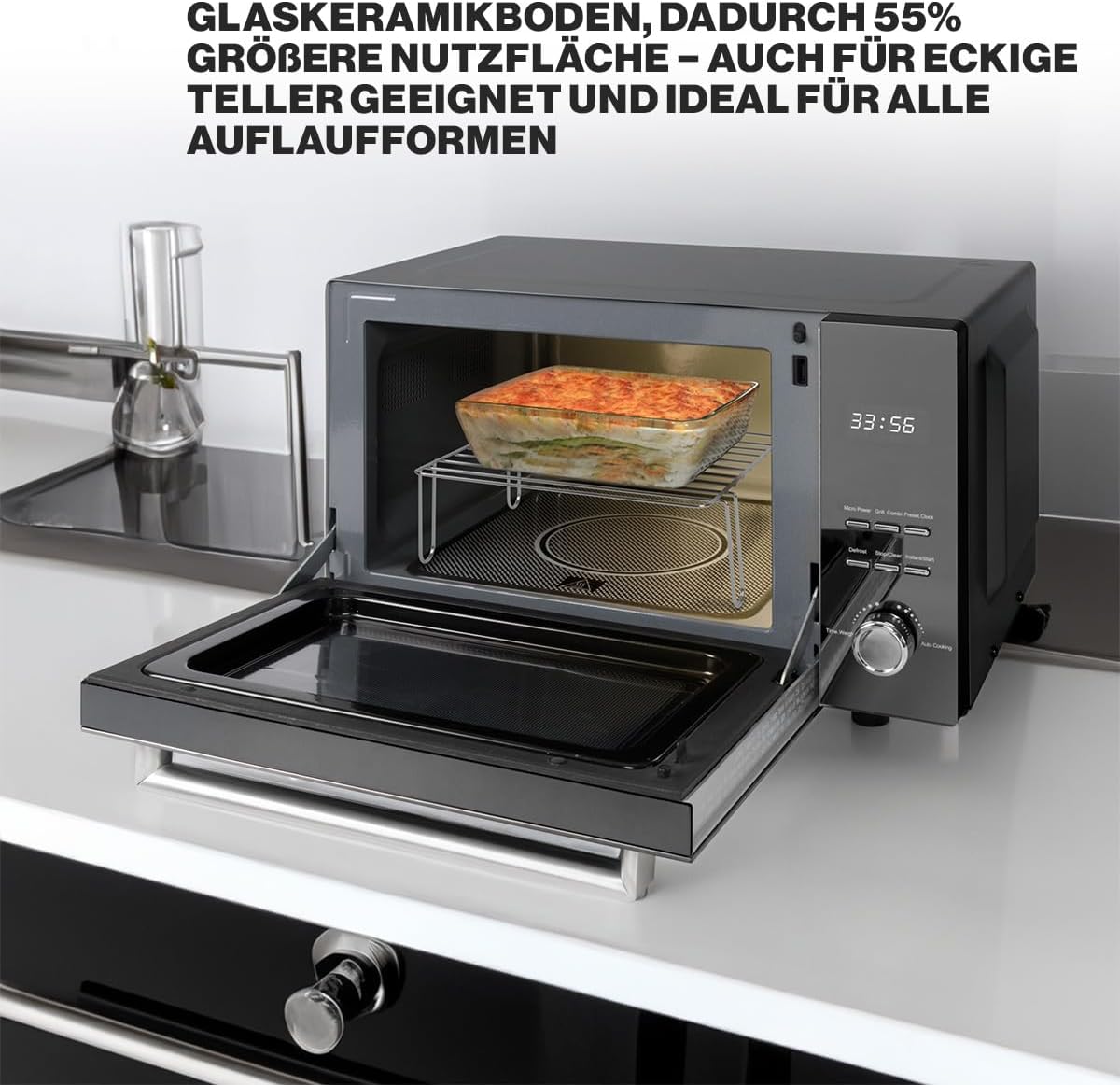 The flat bottom of the microwave allows for ample flexibility of use and offers space for square plates and casseroles – the options are unlimited