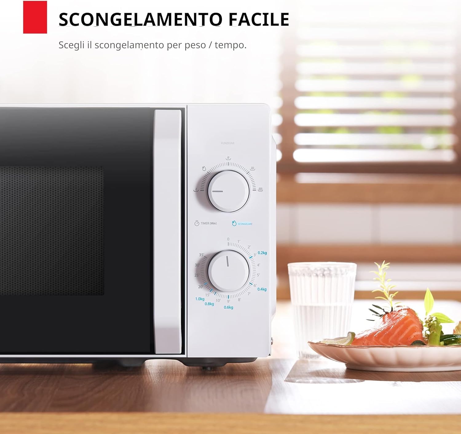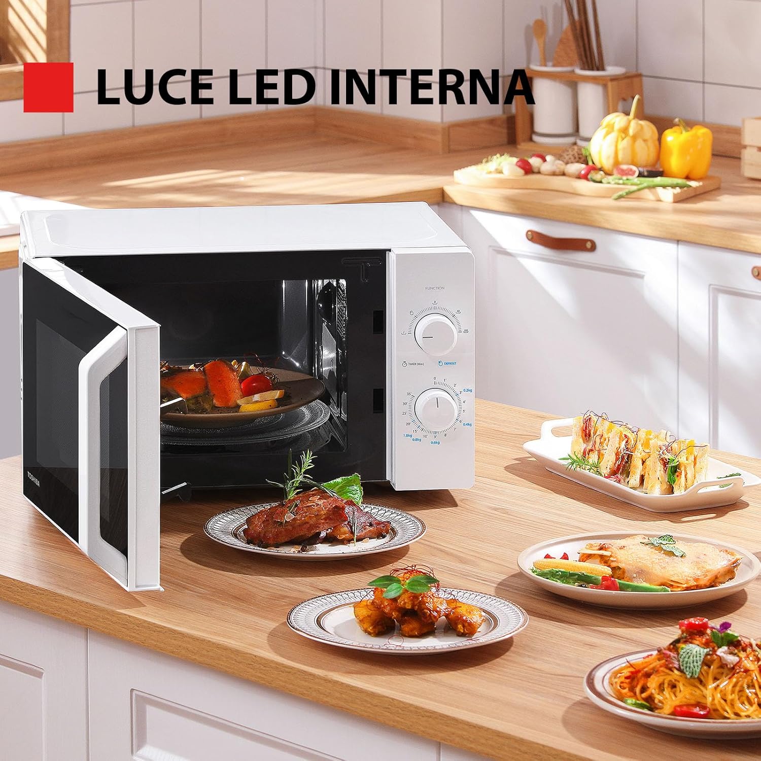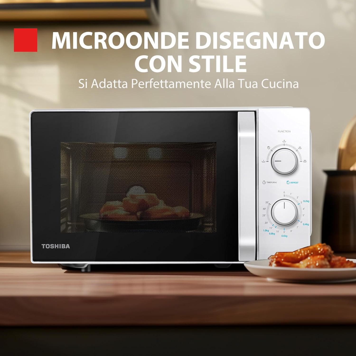 Forno a Microonde Toshiba MW2-MM20P(WH) da 20 Litri: 800 W, 5 Livelli di Potenza e Funzione Scongelamento Pratica Illuminazione LED Interna e Design Elegante in Bianco