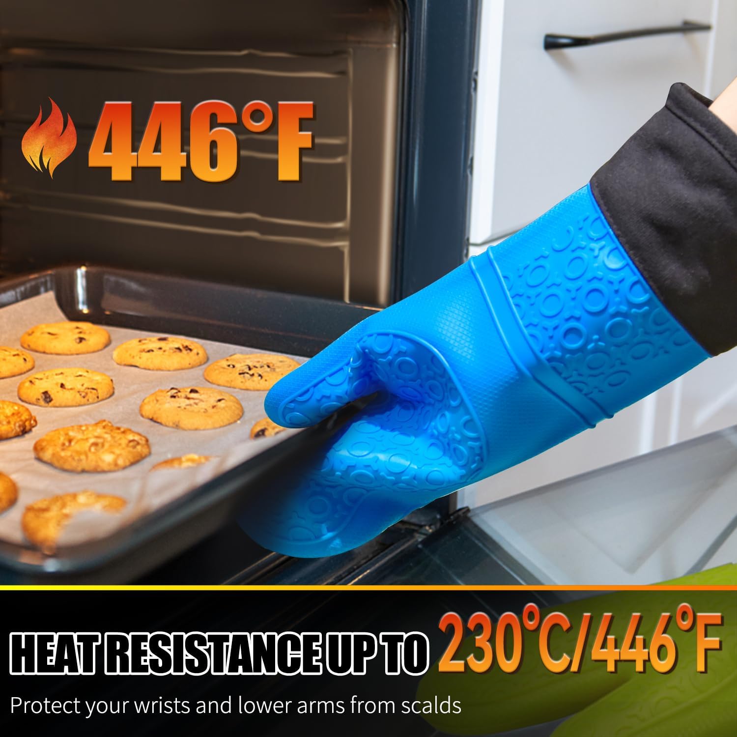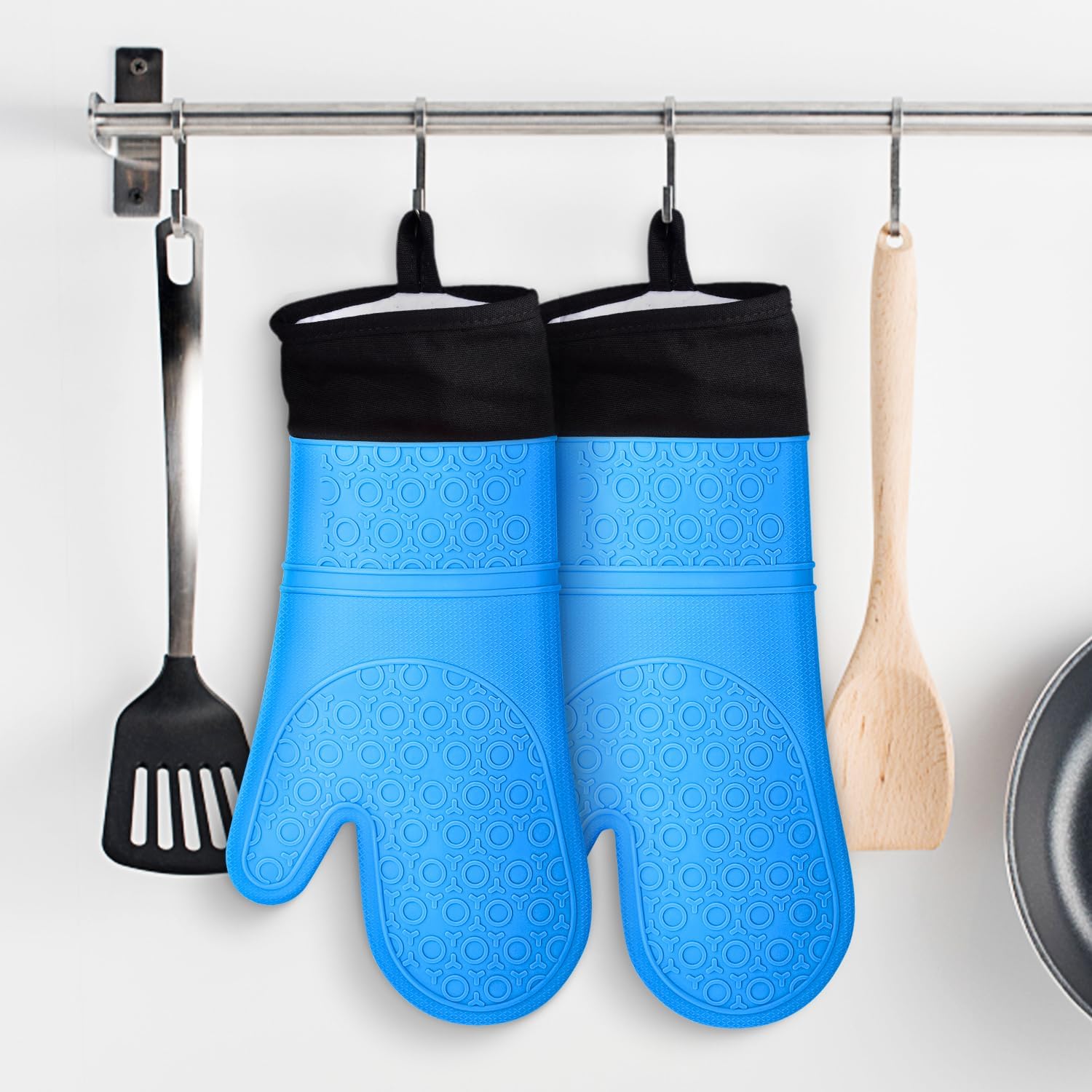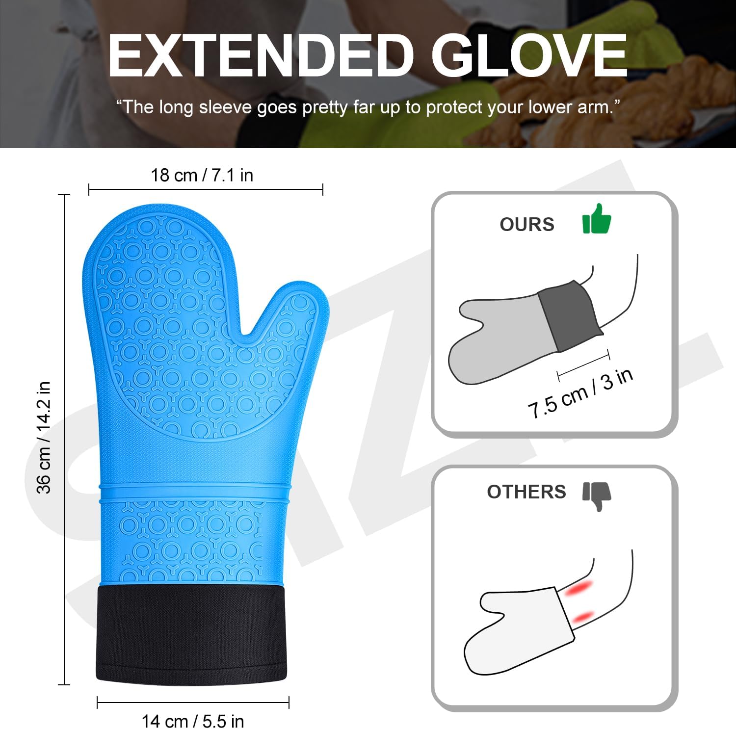 Sopito Silicone Oven Gloves, Extra Long Non-Slip Heat Resistant Oven Gloves (Blue, 1 Pair)