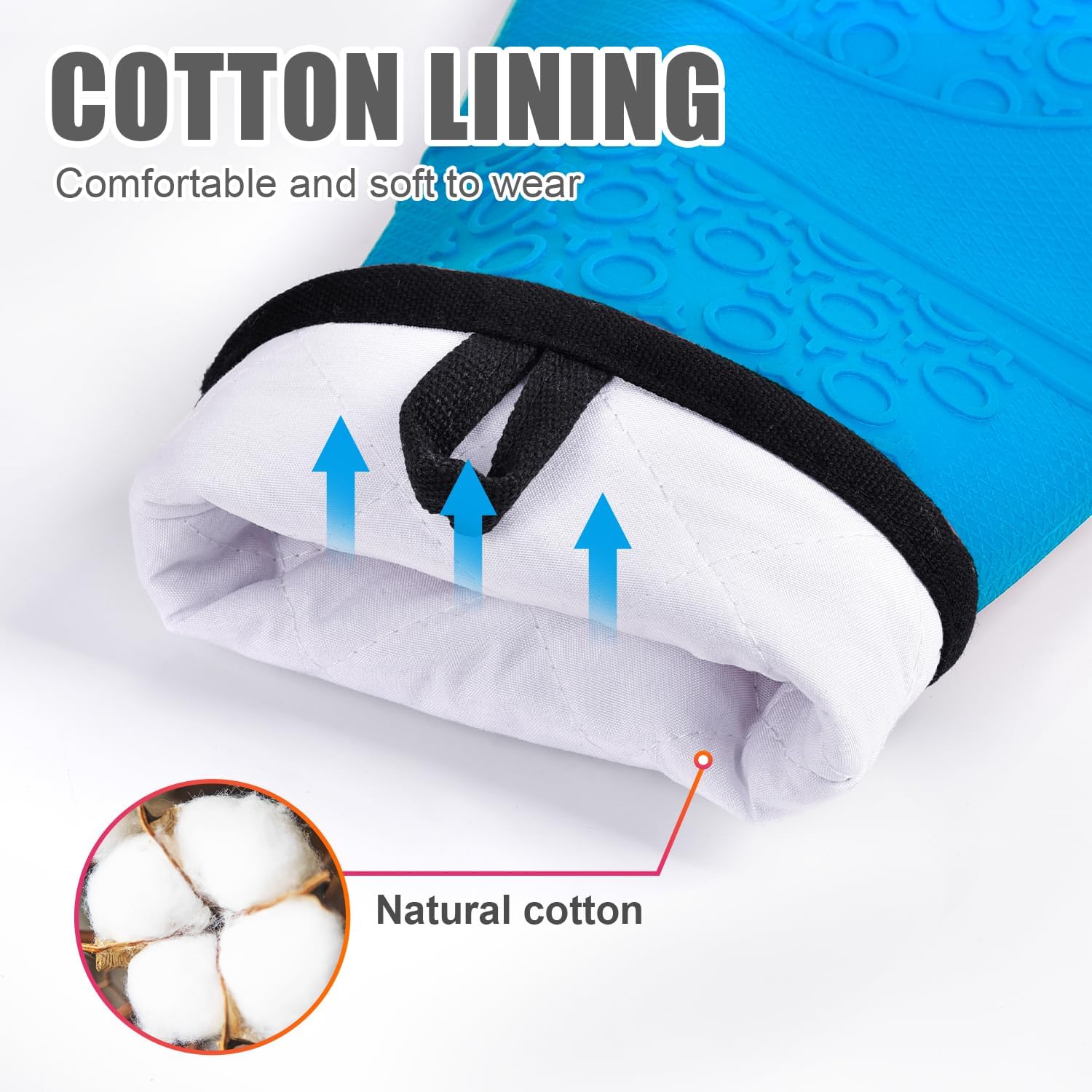 Comfort: The silicone oven gloves feature a high-quality silicone material on the outside and a soft polyester cotton lining, ensuring a comfortable padding for a secure grip. They are highly recommended as kitchen accessories and are widely used for cooking and microwaving.