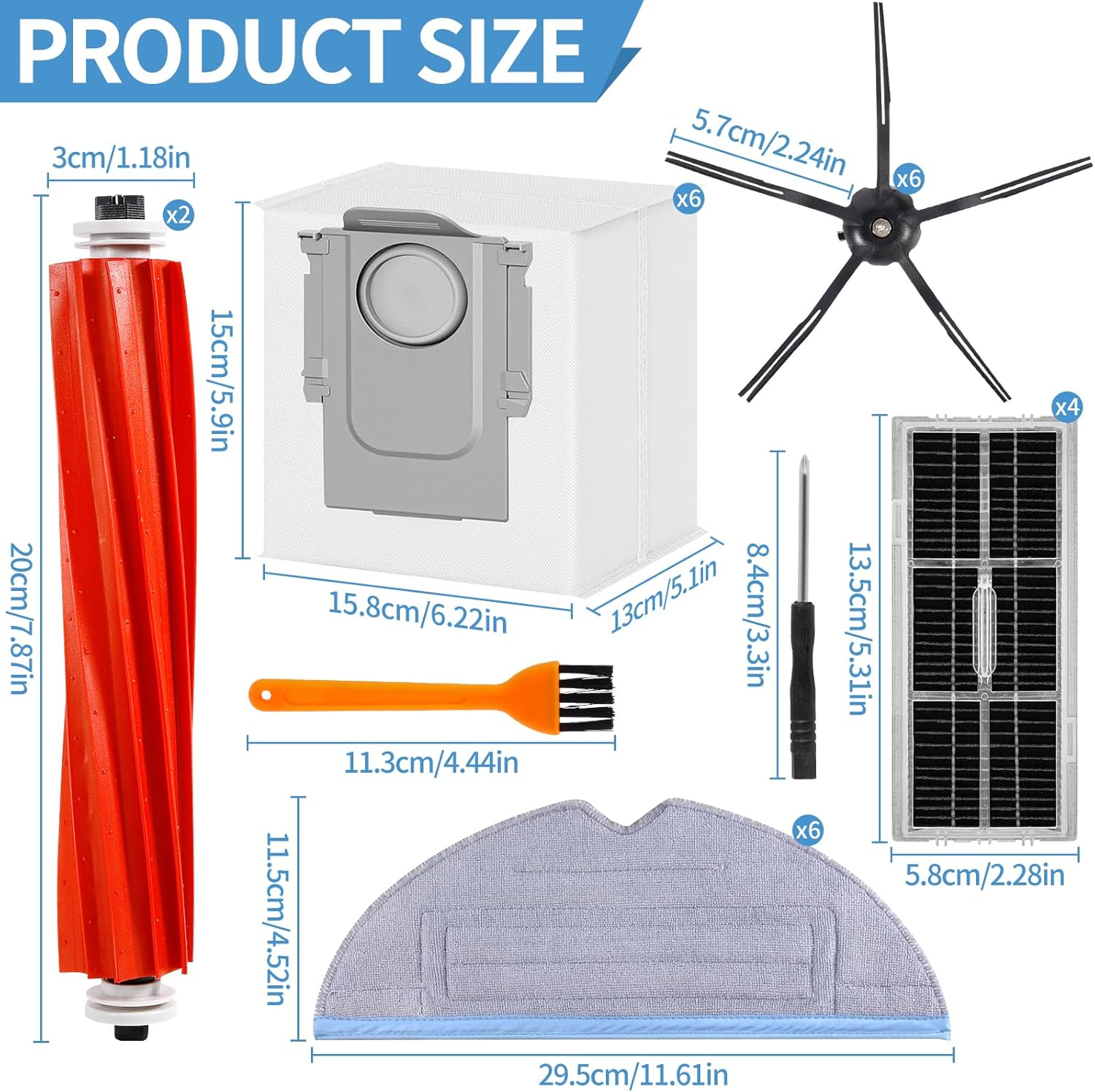 ROELLY 26 Replacement Accessories Kit for Roborock S7 MaxV Ultra/S7 Pro Ultra: 2 Main Brushes, 6 Dust Bags, 6 Cleaning Cloths, 4 Filters, 6 Side Brushes, 1 Cleaning Tool, 1 Screwdriver