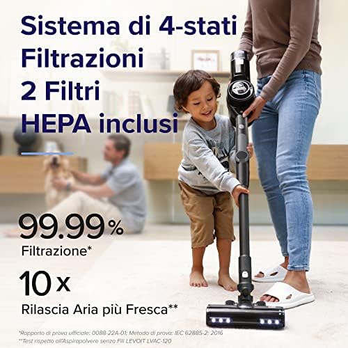 【4-STRATI HEPA FILTRAZIONE】- Grazie al sistema di filtraggio a 4 strati con 2 filtri HEPA lavabili, è possibile filtrare il 99,99% della polvere, del polline e di altre particelle fino a 0,3 micron (rapporto n. 0088-22A-01). Filtra vari allergeni, rilascia aria fresca e protegge la salute dell’aria. La tecnologia di purificazione di LEVOIT è stata approvata da molti clienti sui depuratori, quindi fidatevi di noi, questo aspirapolvere è adatto a chi soffre di allergie e sporcizia