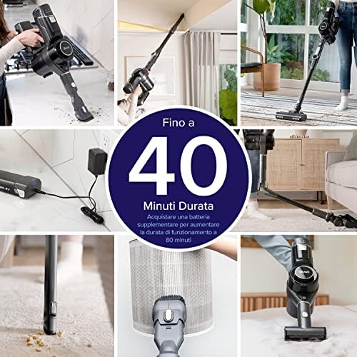 【ASPIRAZIONE POTENTE】- UNA PULIZIA PROFONDA DELLA CASA- Con un motore brushless e la esclusiva tecnologia di aspirazione VortexAir, VortexIQ 40 genera una potenza di aspirazione di 100AW / 21,5 kPa. Può aiutare a raccogliere peli di animali domestici, briciole di pane, lettiera del gatto e altre particelle di grandi dimensioni. Soddisfa le diverse esigenze di pulizia quotidiana e risolve i problemi di pulizia