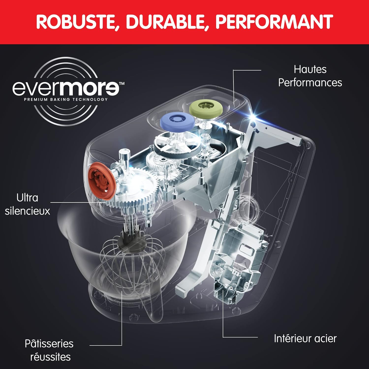 GRANDE CAPACITE: ciotola 5,5 L con coperchio ampia apertura, frusta Flex, impastatrice e impastatrice in ghisa, per ricette fino a 30 persone