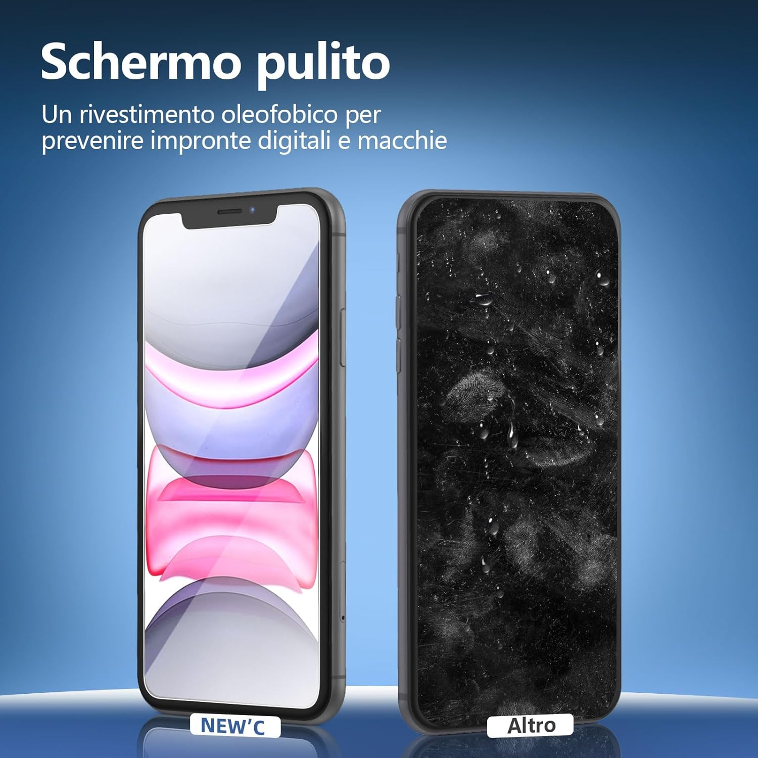 NEW’C 2 Pezzi di Vetro Temperato per iPhone 11 e XR – Pellicola Protettiva Ultra Resistente, Anti Graffio e Anti-Impronte Durezza 9H, 0,33mm Ultra Trasparente e Senza Bolle