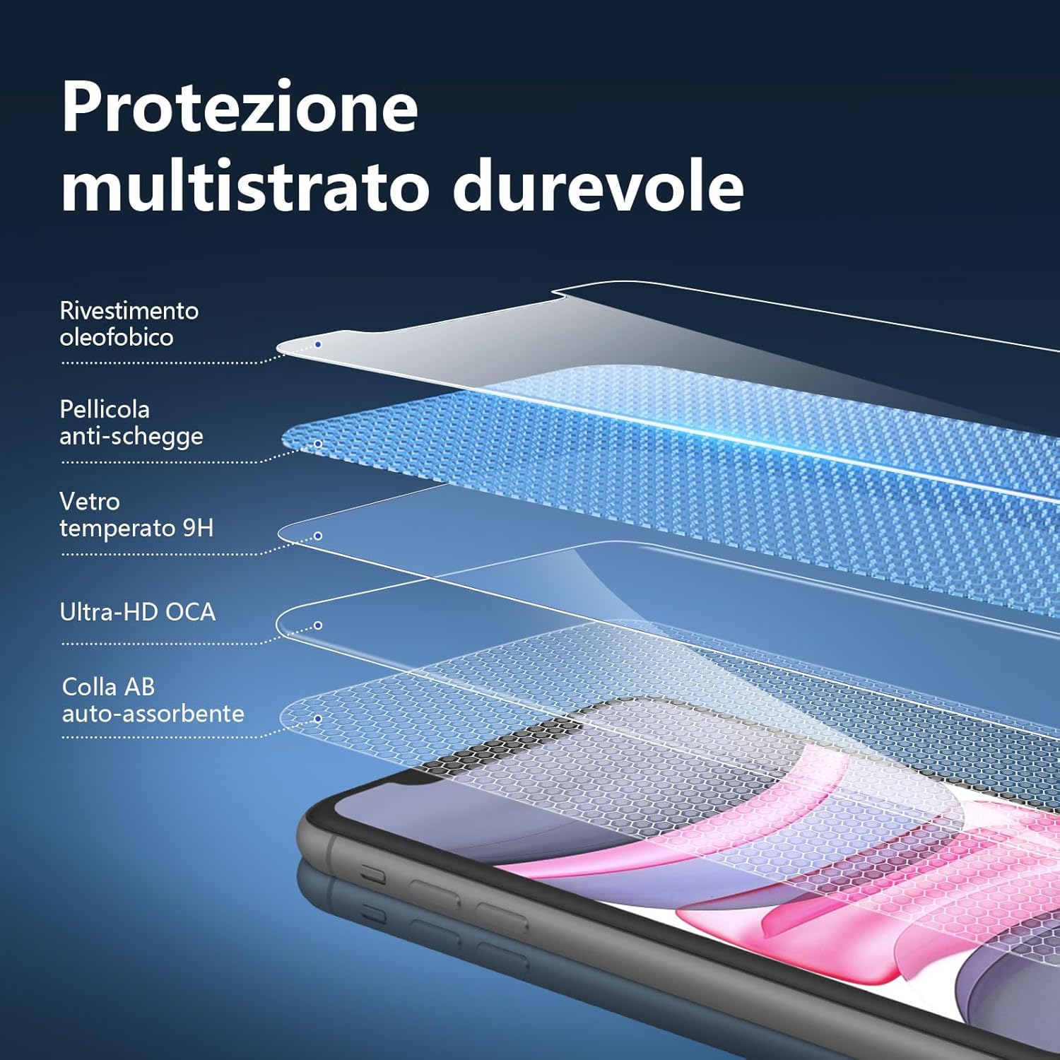 NEW’C Vetro temperato iPhone 11 e iPhone XR (6,1 Pollici), tocco delicato: rivestito sul retro con un solido adesivo in silicone che semplifica l’installazione e fissa saldamente il film in modo da non compromettere la sensibilità del touchscreen”