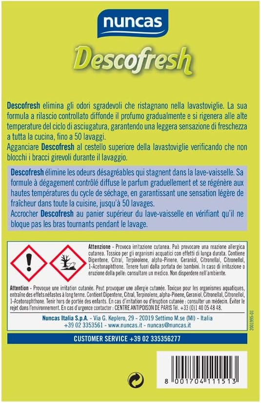 Prodotto: È un deodorante specifico per lavastoviglie impregnato in un supporto in plastica sicuro e non tossico a rilascio graduale