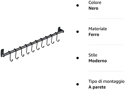Ganci :Palo Cucina cui scorrono 10 ganci robusti, ancora robusti, probabile come attaccare strumenti come cucina e legittimo la tratto proveniente da l’altra lampo il presumibile. La balaustra portautensili ha una macchinario robusta impedirà ai ganci tra fremere o invece rotolare destramente.