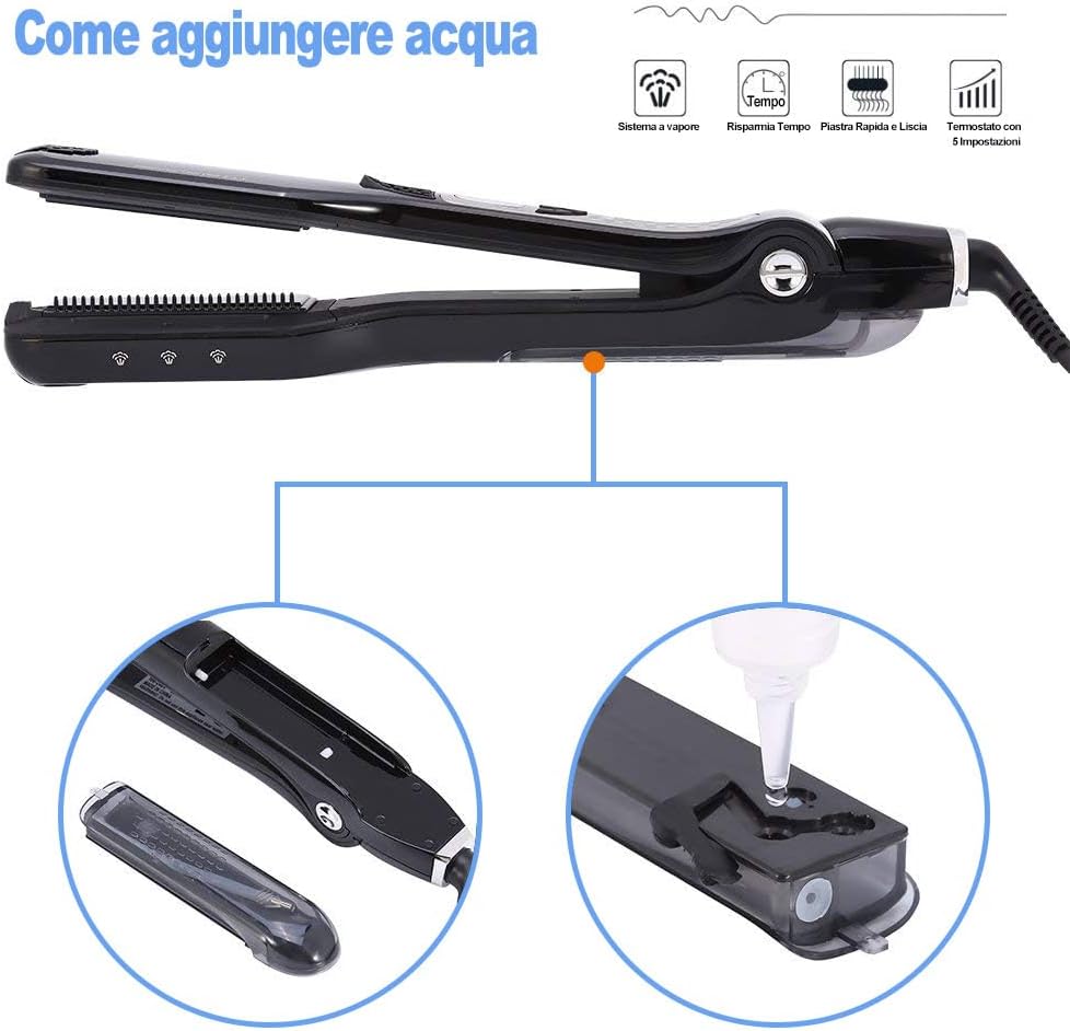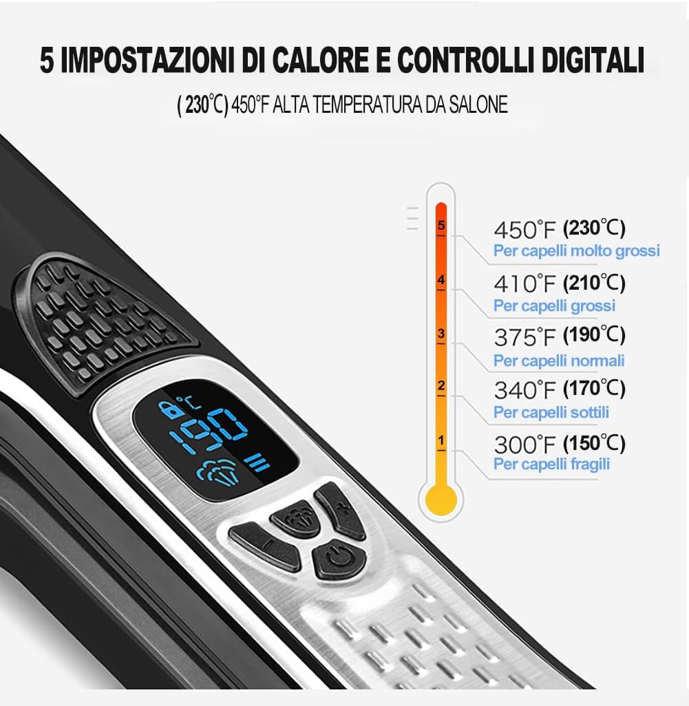 Rilasciando continuamente vapore mentre la spazzola districante e le piastre in ceramica lisciano, questa piastra per capelli professionale ti offre risultati sorprendenti che dureranno fino al prossimo shampoo.