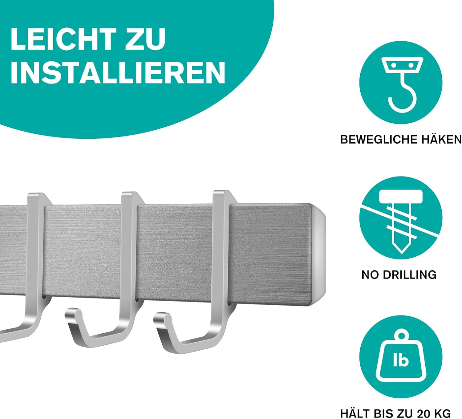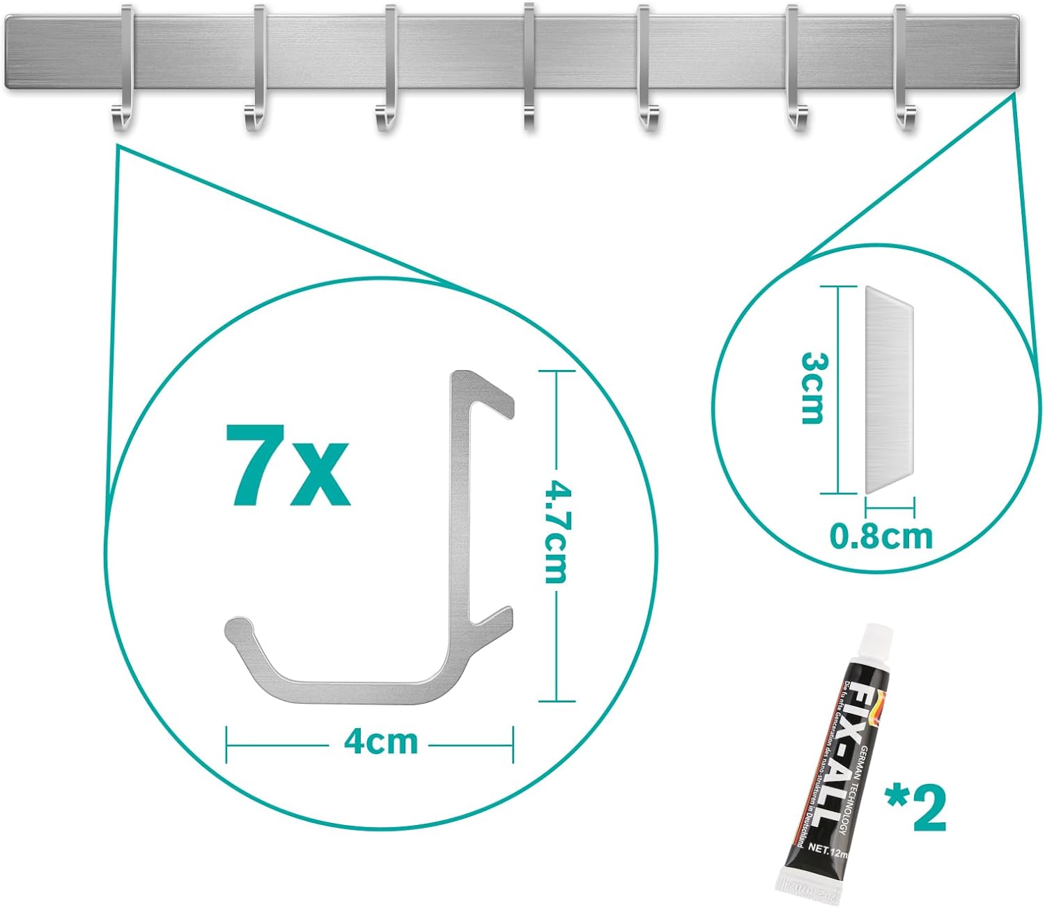 Regge fino a 20 kg: Il binario da cucina è realizzato in alluminio spaziale, con 7 ganci mobili, può contenere fino a 20 kg di utensili da cucina, tazze, ecc.