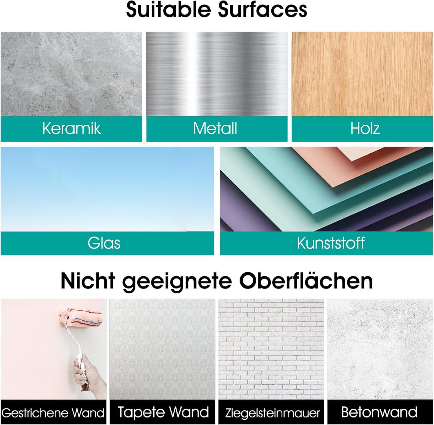 Adatto alle superfici: Piastrelle, vetro, legno, superfici metalliche sono adatte per l’applicazione del binario da cucina senza forare, mentre non si consiglia l’applicazione su superfici come mattoni, pareti dipinte, pareti di carta.