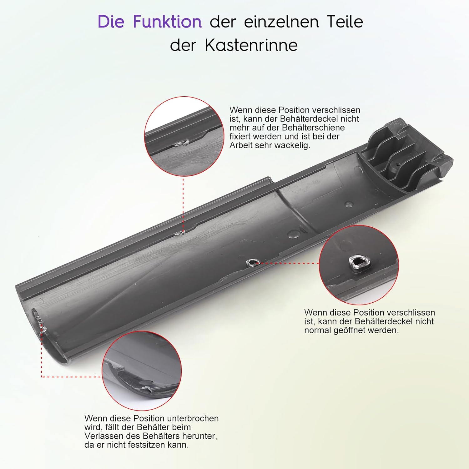 Reasons for replacement: if you notice that the garbage lid cannot be opened when you push the trash to empty the trash and the bucket falls directly, please check the triangular part at the end of the cyclone trash can, if this part is broken, please replace the trash can in time