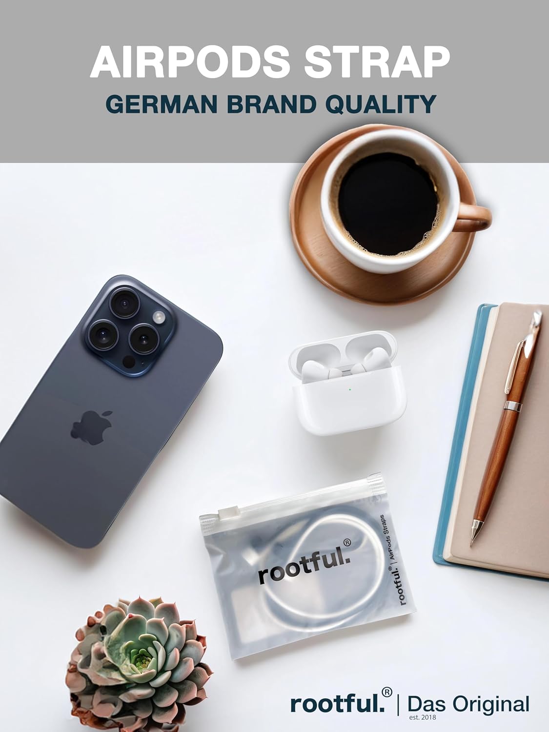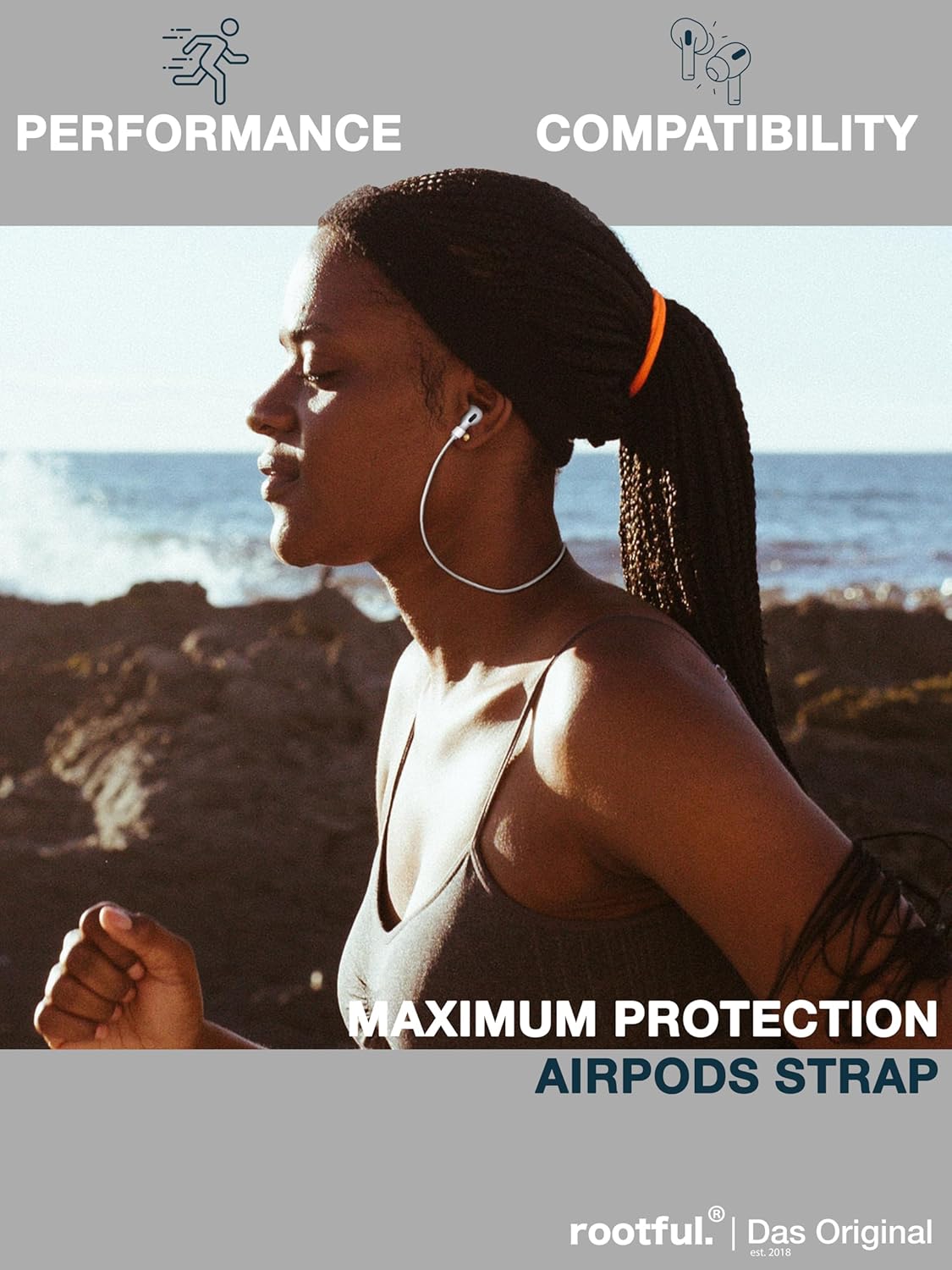 📏 [LUNGHEZZA OTTIMALE]: La confezione include 2 bande nei colori classici nero e bianco. Con una lunghezza di 55 cm, le bande di supporto rootful. Urban Essentials per AirPods offrono la vestibilità perfetta – né troppo lunghe, né troppo corte, ideali per tutte le attività.