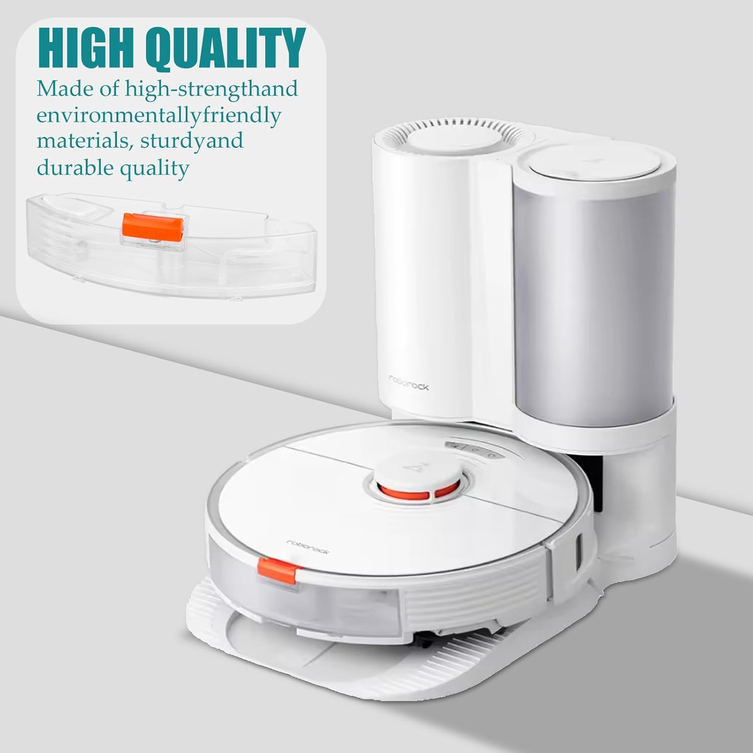 High Quality Water Tank:The Roborock S7 water tank is made of high quality ABS material, fine workmanship makes it durable and not easy to damage. Made of high quality material, strong and durable. Large capacity, energy and water saving, good sealing, more convenient to clean.
