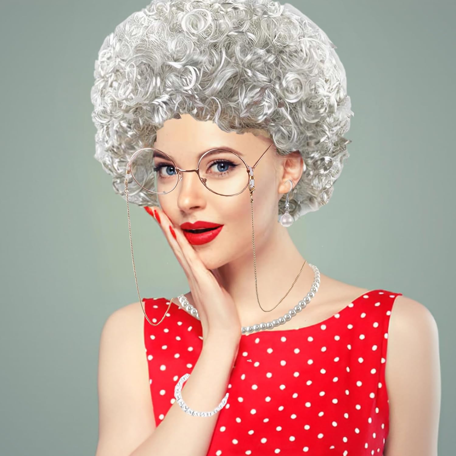 Set of 8 wig for grandma, grandma, glasses, for grandma for grandma, for grandma from the 70s, 80s, 90s, cosplay, cosplay accessories, necklaces and carnival bracelets