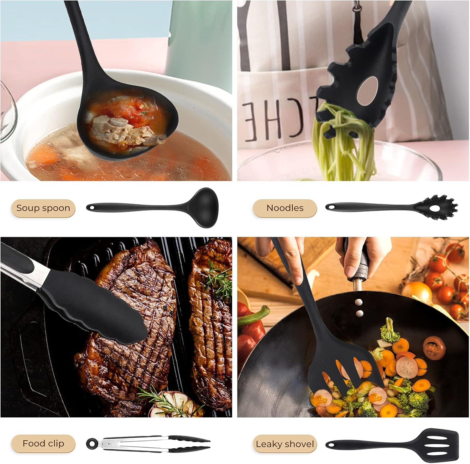 1.SET PROFESSIONALE DA 10 UTENSILI DA CUCINA: Il set include un piccolo raschietto + frullino per le uova + spaghetti per spaghetti + cucchiaio per l’insalata + spatola + cucchiaio + grande raschietto + colino + clip per alimenti + pennello + gancio 10s (comodo ripostiglio) .I nostri 10 utensili in silicone diversi danno tutti gli strumenti per completare i tuoi piatti e rendere la cottura molto più semplice.