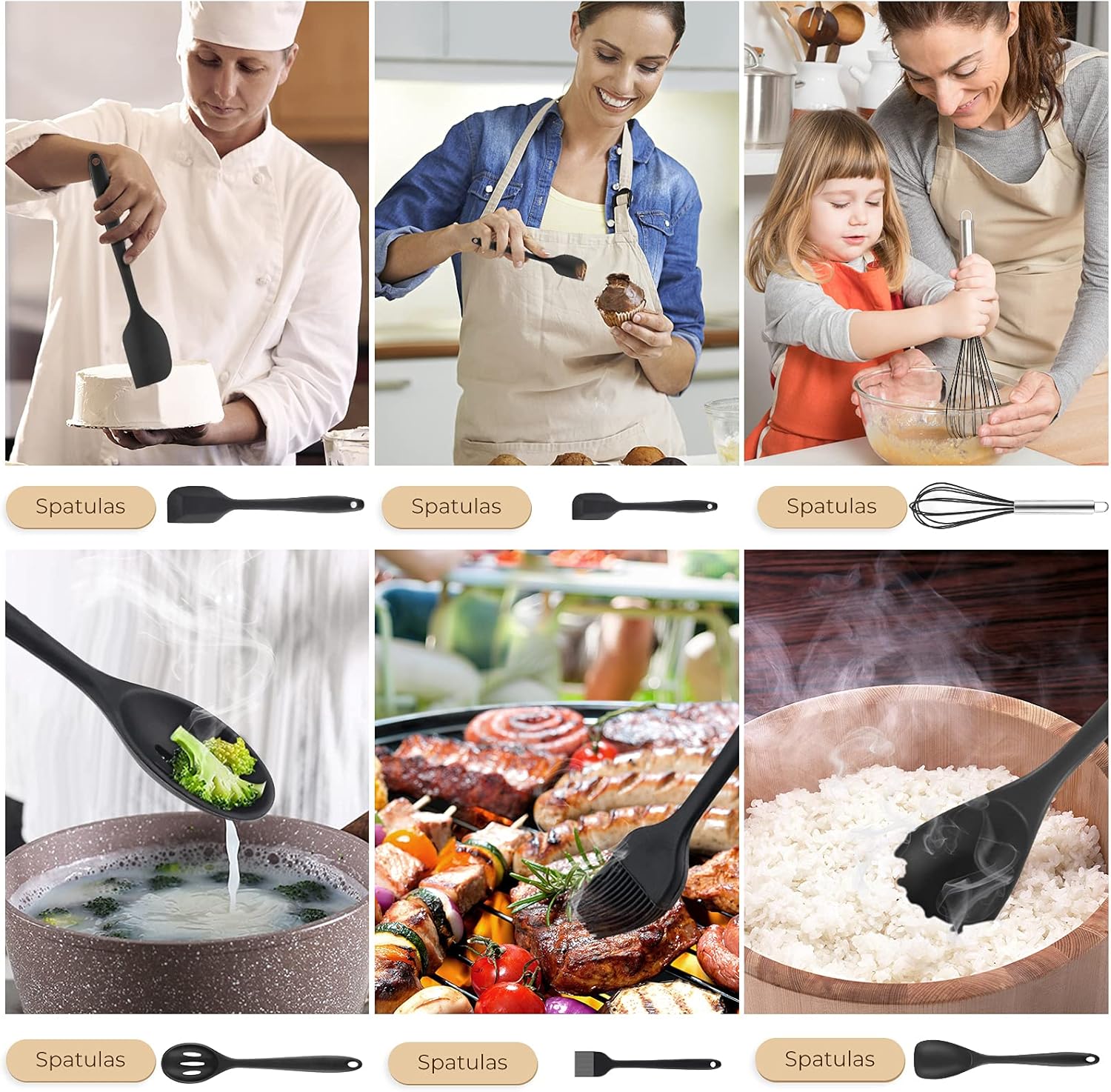 2.SILICONE SICURO PER ALIMENTI : Realizzati in silicone alimentare approvato dalla FDA, sono privi di BPA, molto sicuri per trattare qualsiasi tipo di alimento. Questi utensili da cucina in silicone non reagiscono con cibi o bevande né generano fumi tossici, quindi non devi preoccuparti della salute della tua famiglia. È molto probabile che dureranno più a lungo degli altri utensili da cucina in plastica.