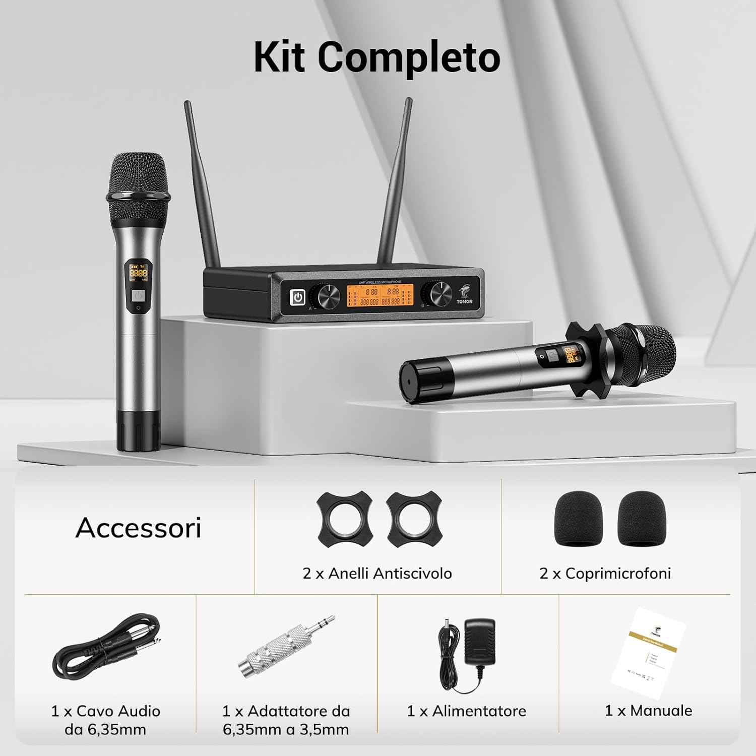 STURDY AND DURABLE MATERIAL: Full metal microphone with steel mesh, very resistant to impact and corrosion. It is very sturdy and durable. The metal receiving box is equipped with an LCD display that allows you to see frequency, signal, battery level and other information at a glance.