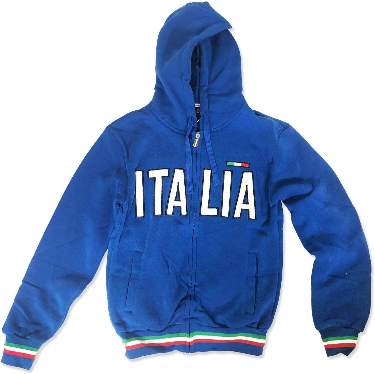 Felpa sportiva unisex con zip, cappuccio e scritta “Italia”. Imperdibile!